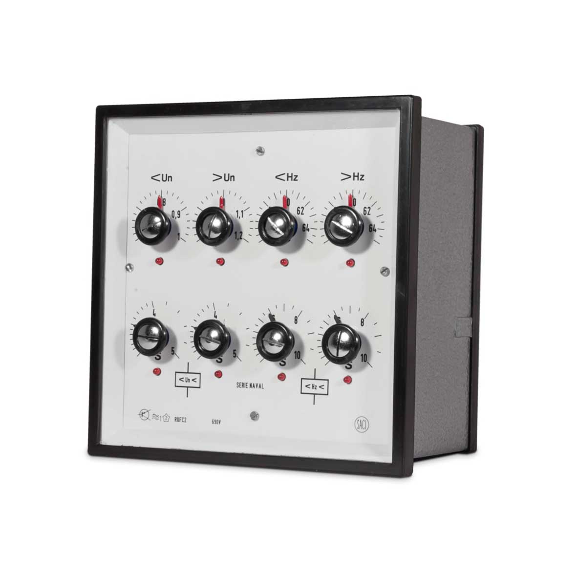 Instrumento para el control de la tensión y frecuencia en una red trifásica ó monofásica.