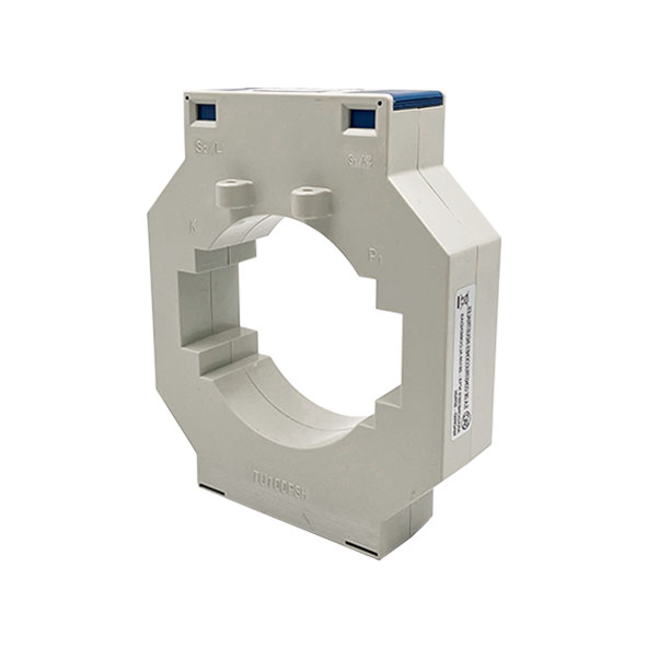 Description: Current transformer TU100PSH for measuring instrumentation. It is a transformer for through primary, for cable or plate. Its enclosure is made of plastic and has a narrow profile, which allows better adaptation in the panel due to its reduced dimensions.