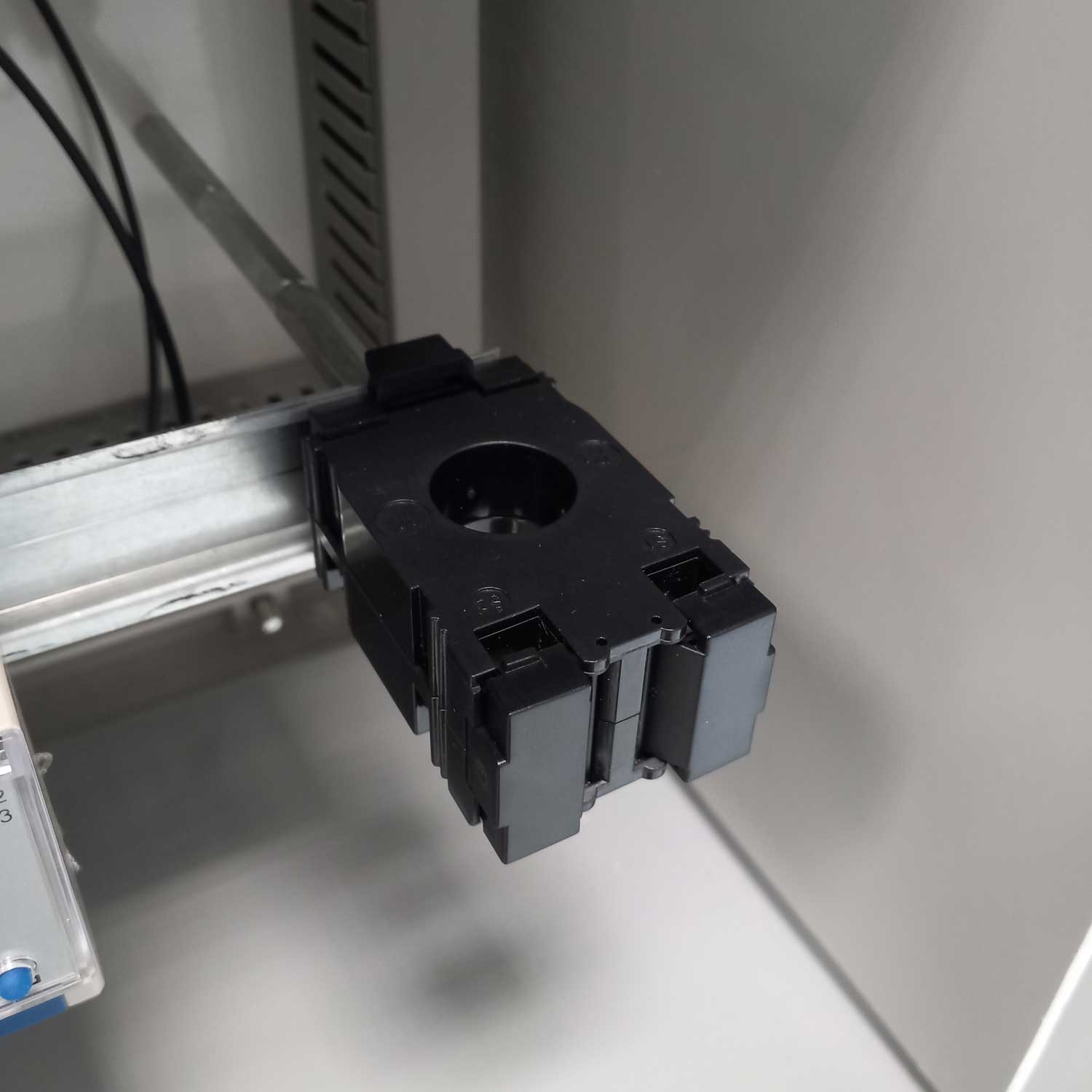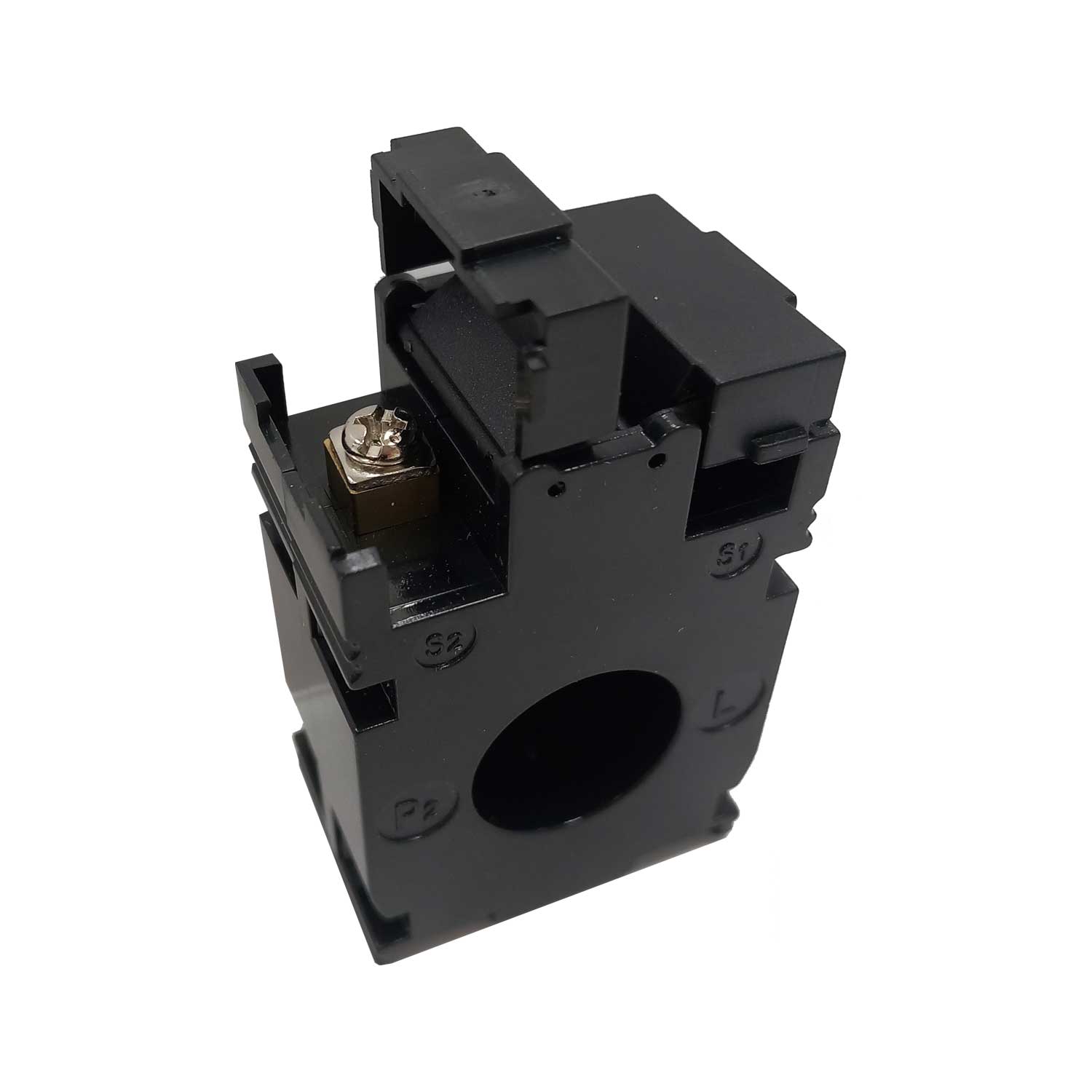 Transformador de medida para cable con posibilidad de fijación sobre carril DIN. Su diseño en perfil estrecho permite una mejor adaptación en el cuadro debido a sus reducidas dimensiones. Envolvente de plástico.