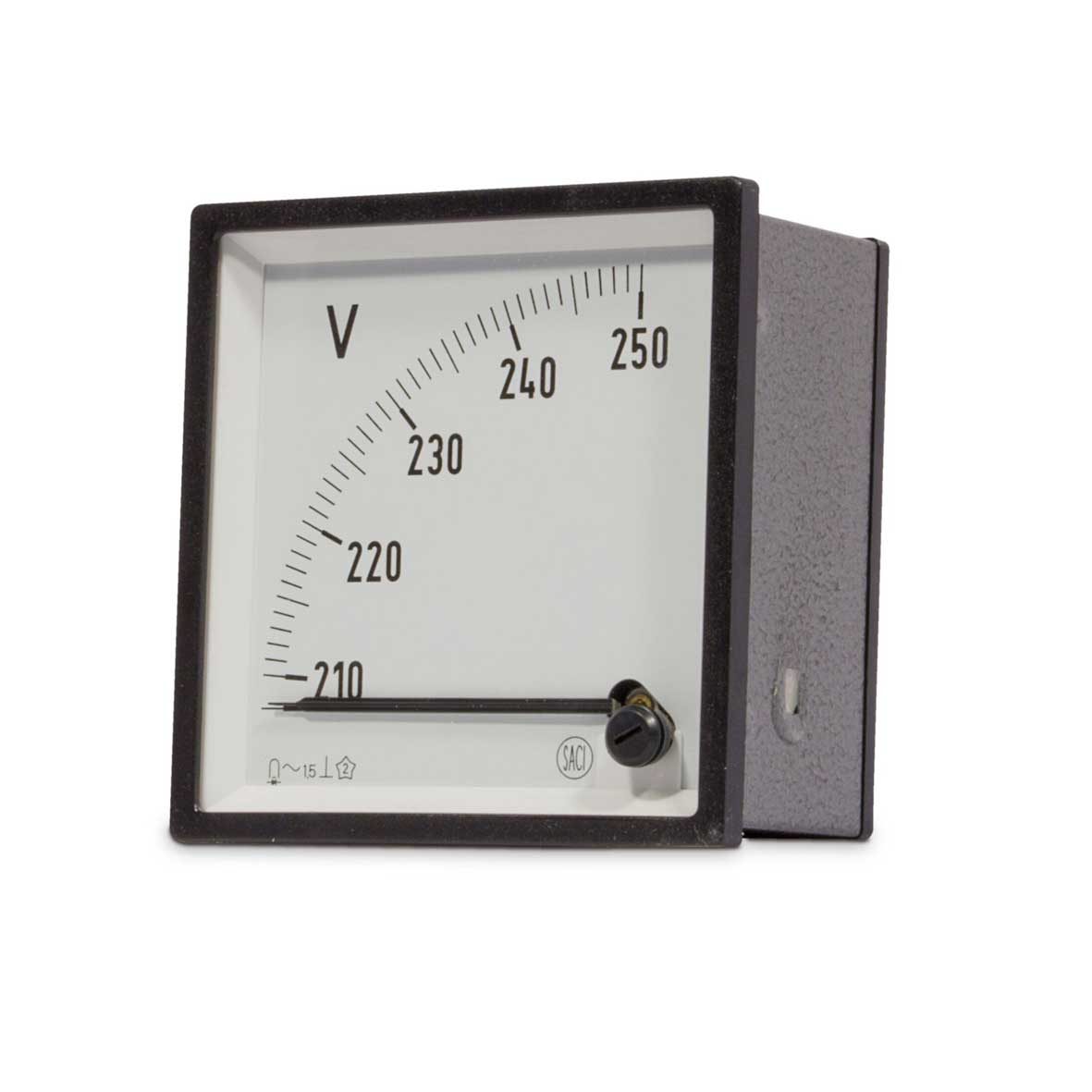 Instrumento analógico diseñado para la medición precisa de tensión alterna en un rango específico. Gracias a su sistema de bobina móvil y a la inclusión de un rectificador interno, permite la conversión de señales alternas en continuas para una lectura estable y proporcional. Este tipo de voltímetro ofrece una escala perfectamente lineal, con medición desde cero, lo que permite detectar con claridad incluso pequeñas variaciones. Al estar calibrado para un valor nominal concreto, proporciona una mayor precisión en un tramo limitado de la escala, ideal para aplicaciones en las que es necesario controlar si la tensión se mantiene dentro de un valor determinado.
