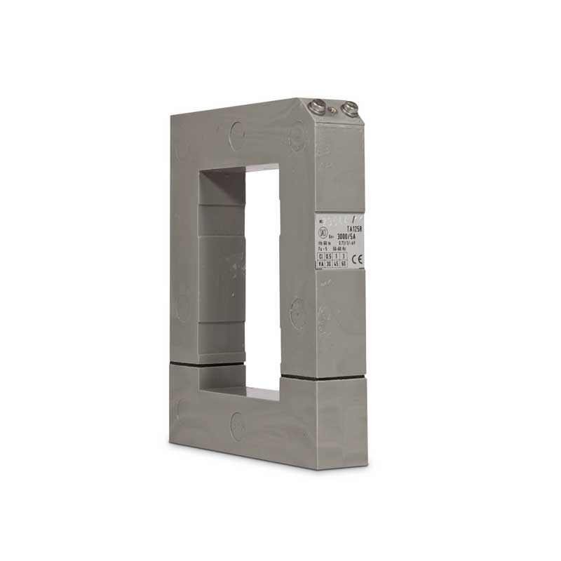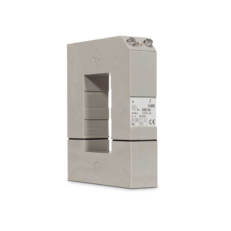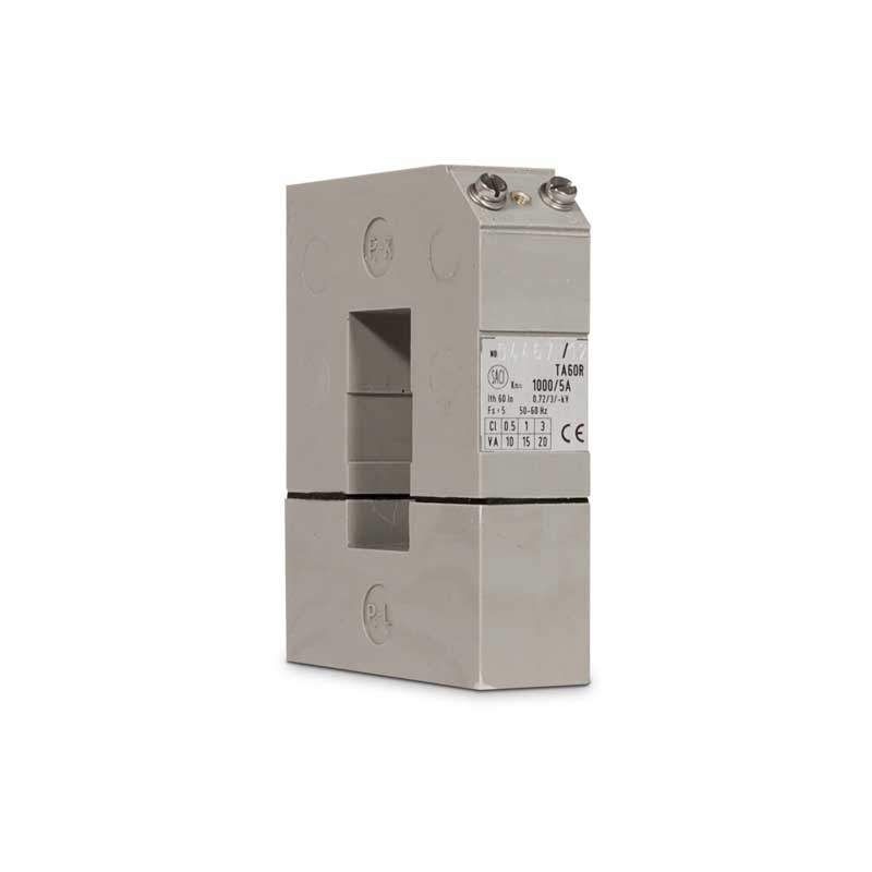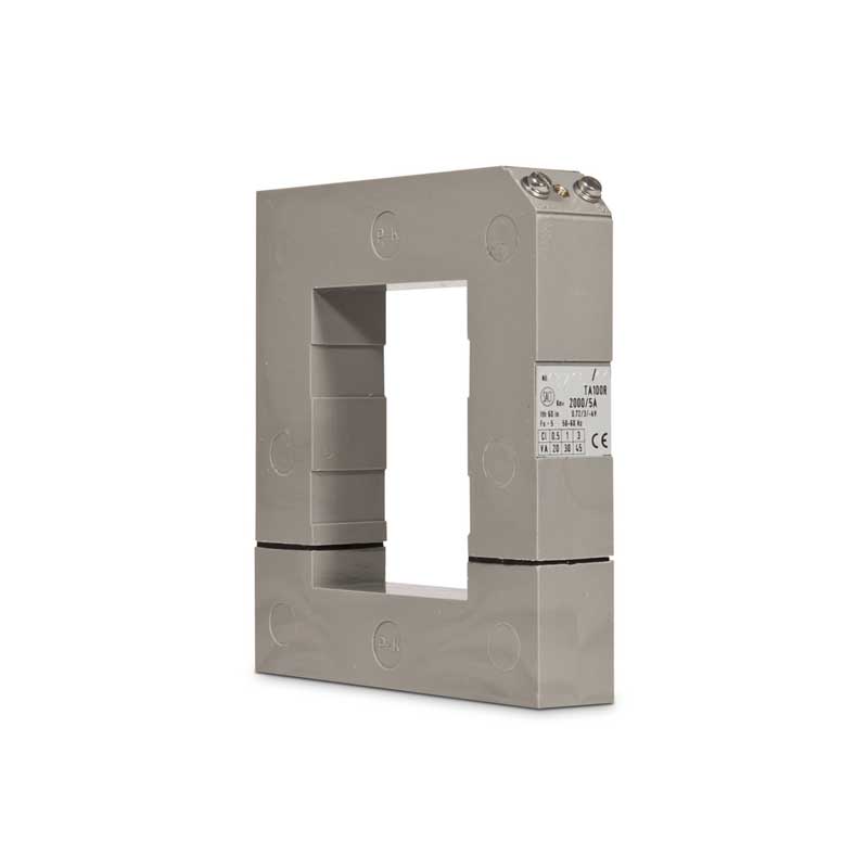 El transformador de corriente TA__R es de núcleo abierto para la instrumentación de medida. Es un transformador para primario pasante, para cable o pletina de diferentes dimensiones. Su envolvente es de resina. Su principal ventaja es la facilidad de instalación por la posibilidad de abrir el núcleo. Es un transformador más robusto por estar recubierto de resina, permitiendo su instalación incluso en exterior.
